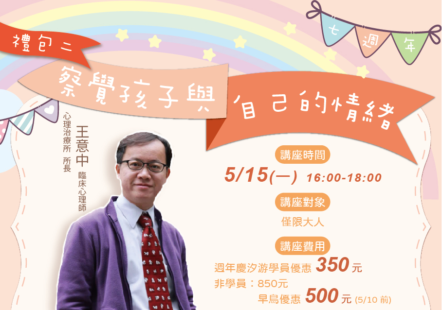 透過這場講座,用愛理解孩子、用智慧愛孩子,一起做自己情緒的主人。